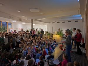 Am 5. Dezember fand ein gemeinsames Adventssingen aller Klassen in unserer Eingangshalle statt. Mit musikalischer Unterstützung von Frau Schulze-Beusingsen und Frau Wilms-Riepegerste kam bei den Liedern “Sei gegrüßt lieber Nikolaus”, “Singen wir im Schein der Kerzen” und “Dicke rote Kerzen” schon richtig weihnachtliche Stimmung auf. Am 13. Dezember findet dann das zweite Adventssingen statt.