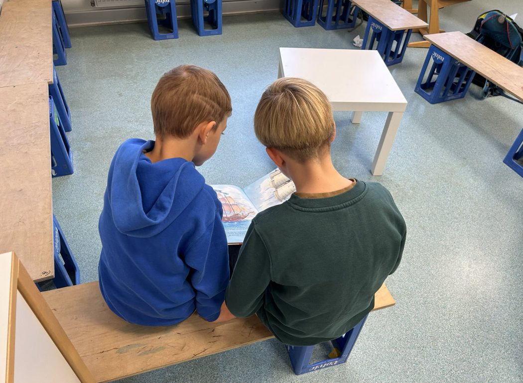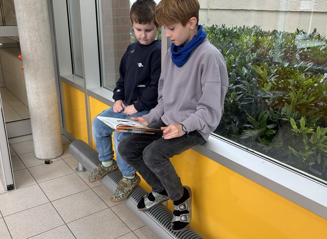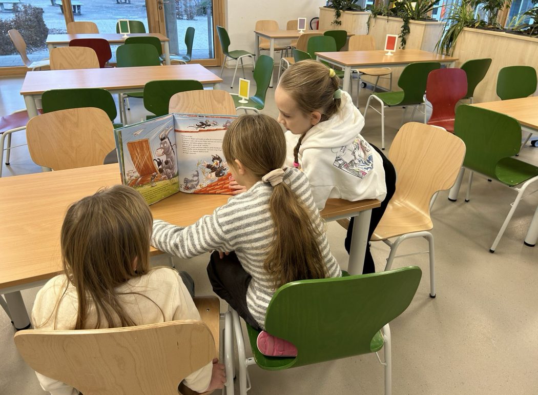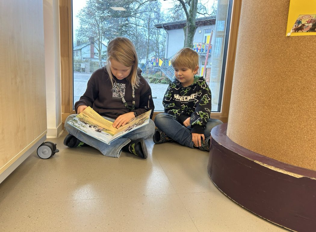 Die Kinder des vierten Schuljahres haben ihre Paten aus Klasse 1 eingeladen und ihnen an gemütlichen Plätzen im Schulgebäude vorgelesen.