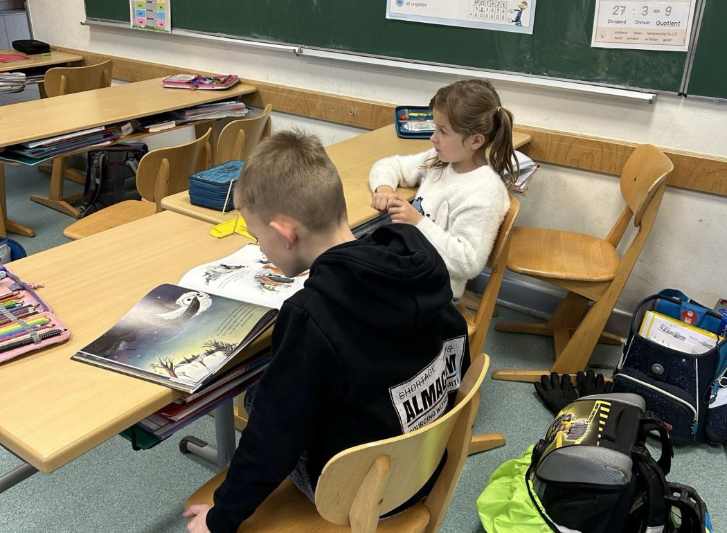 In zwei Klassen aus dem ersten (Klasse 1c) und zweiten (Klasse 2b) Schuljahr lasen Eltern auf einer anderen Muttersprache wie Chinesisch, Arabisch und Polnisch vor.