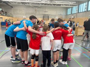 Das Jungenteam war aufgrund eines zeitgleichen Handballcamps, an dem einige Schüler teilnahmen, sehr knapp besetzt und musste ohne Auswechselspieler alle Spiele meistern. Damit gab es weder Zeit zum Verschnaufen noch Möglichkeiten der Umstellung. Doch die Jungen haben gekämpft und gefeitet, es den Gegnern nicht leicht gemacht. Von Spiel zu Spiel konnten sie ihr Zusammenspiel verbessern und stärken. Zwar gab es einige Fehlpässe, aber auch Torwurfchancen. Das Team der Jungen erreichte am Ende des Turniers den 7. Platz.