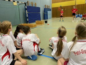Am Mittwoch, den 11.3.2026, nahmen zehn Jungen und Mädchen der vierten Klassen an dem Wettbewerb in der Sälzerschule Bad Sassendorf teil. Dabei mussten sie an verschiedenen Stationen mit der Hand und dem Fuß dribbeln, Slalomparcours durchlaufen und Zielwerfen. Sie traten gegen sieben andere Grundschulen an und erreichten am Ende einen tollen dritten Platz.